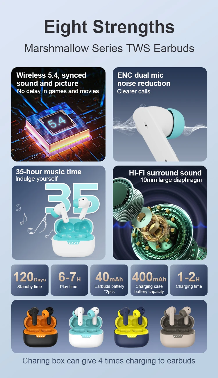 40 mins, Support to connect with 2 mobile phones, Charge for 10 minutes and play for 10 hours.