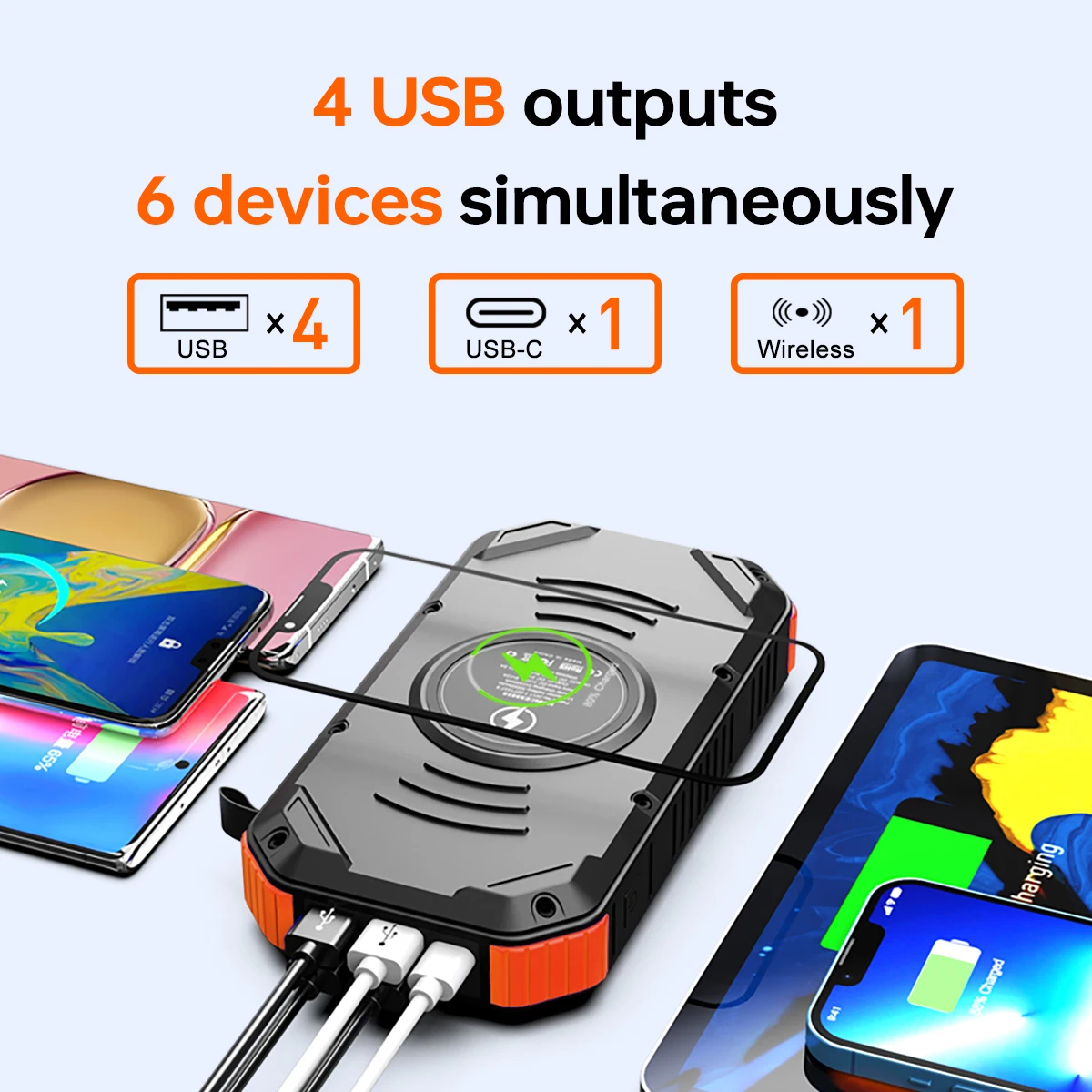 Solar Power Bank, Ultra Slim, Waterproof, Fast Charging, High Capacity, Wireless Charger, Portable, for outdoor