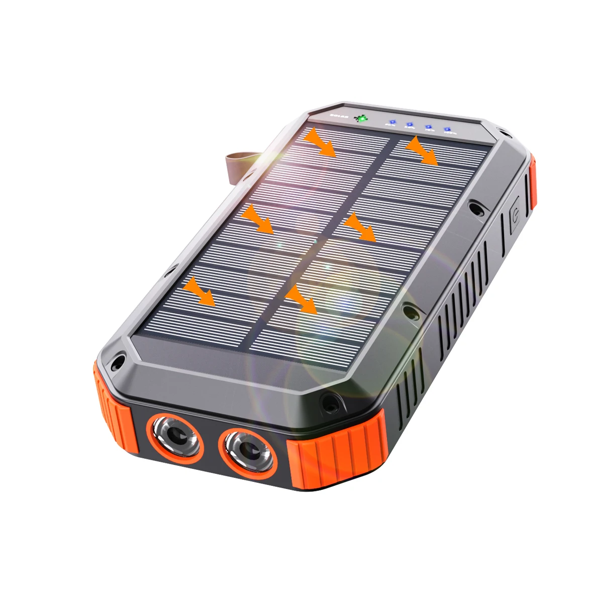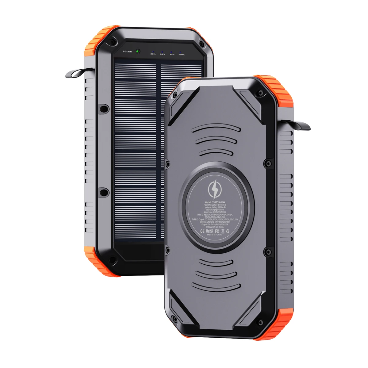 Stay powered up anywhere you go with the 30000mAh Solar Power Bank, a reliable companion for outdoor adventures and everyday use. Equipped with a massive battery capacity, this portable charger allows you to charge smartphones, tablets, smartwatches, and more multiple times without needing to recharge the power bank itself. Say goodbye to low battery anxiety and keep your tech powered, even while off the grid.