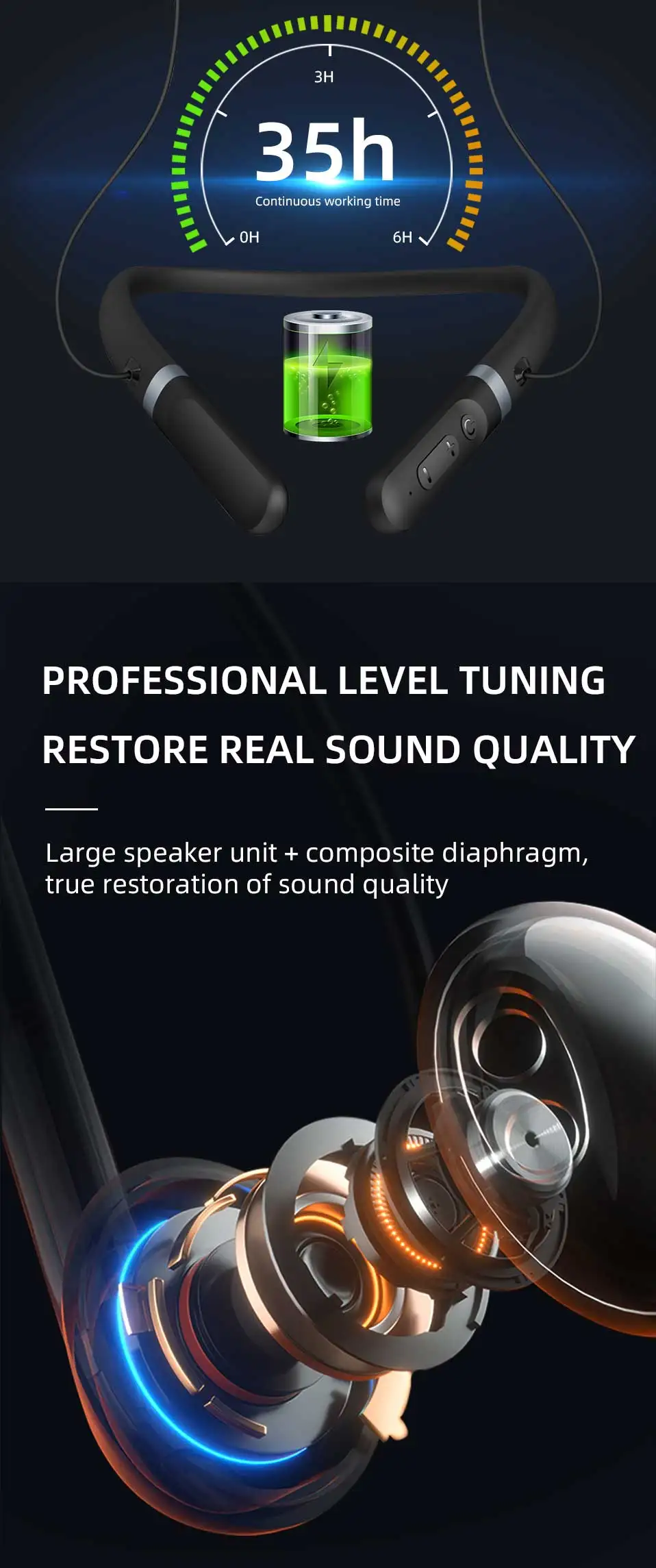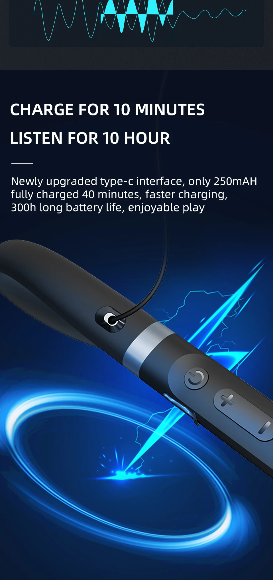 40mins, Support to connect with 2 mobile phones, Charge for 10 minutes and play for 10 hours.