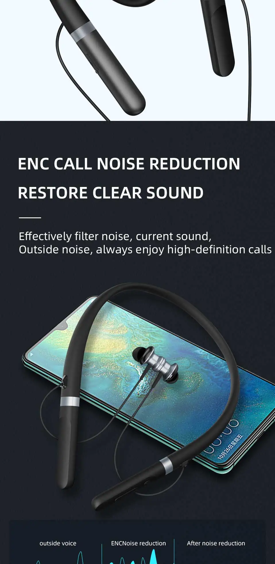 battery display, voice control, talking, music play, multi-point connection,ANC